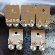 韩国进口代购饰品日韩版水钻珍珠几何形雪花蝴蝶结前后耳钉耳环女