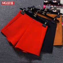 2016秋冬毛呢高腰短裤女 加厚阔腿a字外穿韩版宽松大码呢子靴裤