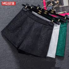 春秋女短裤2016新时尚提花a字阔腿高腰韩版百搭大码休闲外穿热裤