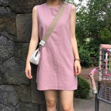 韩国复古中长款显瘦开叉背心裙两件套百搭松紧腰短裤休闲套装女夏
