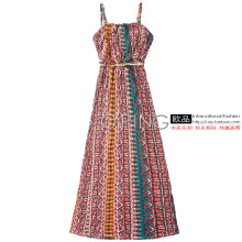 欧美外贸原单波西米亚可脱卸吊带高腰裹胸连衣裙长裙带腰带2H05