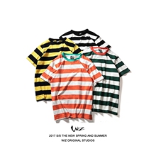 夏装日系原宿风百搭条纹男女款短袖tee欧美街头宽松纯棉情侣t恤潮