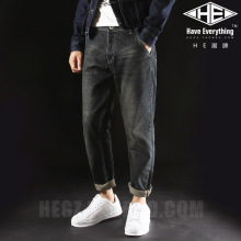 HE潮牌青少年简约百搭牛仔裤 怀旧水洗裤 日系原创直筒长牛仔裤