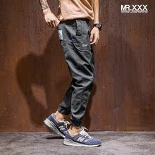 日系潮牌贴袋设计工装裤秋冬男士小脚束脚裤欧美复古拼接休闲长裤