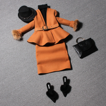 欧洲站2016新款秋冬装时尚欧货潮毛呢外套包臀裙两件套套装女
