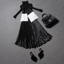 欧洲站2017春装新款女装欧货潮韩版毛衣百褶裙时尚两件套套装女
