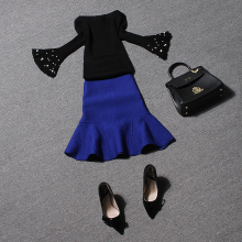 欧洲站2016秋装新款女装时尚套装裙套头针织衫鱼尾半身裙两件套