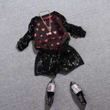 欧洲站2016春装新款长袖外套女显瘦亮片短裤套装女时尚潮款两件套