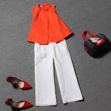 欧洲站夏装女2017新款女装时尚欧货潮无袖九分阔腿裤套装两件套女