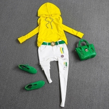 欧洲站春装新款时尚彩色连帽防晒衣白裤子休闲套装女三件套T1S1H2