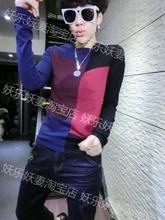 欧货2017新品热卖拼色袖高领韩版休闲女款打底衫16092515GW