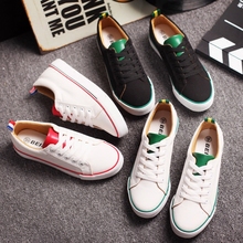 蓓尔 纯色帆布鞋百搭鞋 系带低帮厚底女鞋休闲单鞋2016春季经典款