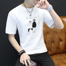 夏装男士短袖t恤 韩版圆领半袖宽松体恤潮流男装半截袖白色上衣服