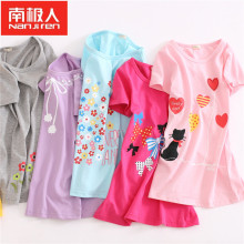 南极人童装儿童睡衣女童睡裙短袖夏季中大童宝宝家居服连衣裙薄款