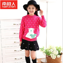南极人秋冬童装加厚儿童女童圆领套头毛衫烫钻毛衣高领针织衫韩版