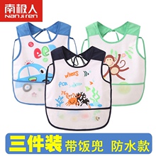 3件装南极人防水反穿衣宝宝婴儿吃饭罩衣围兜画画衣儿童围裙夏季