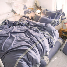 公主风蕾丝全棉贡缎四件套1.8m纯棉床单被套床上用品纯色六件套