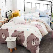 简约卡通夏天全棉被套Line布朗熊纯棉四件套床单款儿童 床上用品