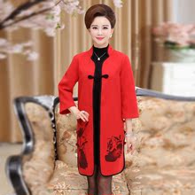 2016秋冬新款厚款开衫中老年毛呢大衣女装中国风中长款女士外套