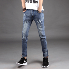 夏季薄款破洞牛仔裤男士薄款2017潮流韩版修身显瘦弹力小脚男裤子