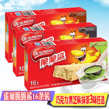 雀巢脆脆鲨抹茶味黑芝麻味巧克力味夹心威化16条320克盒