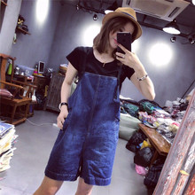 韩版时尚黑色显瘦T恤清新学生宽松休闲蓝色牛仔背带裤短裤两件套