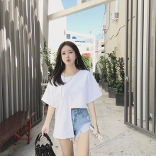 金美希 2017夏季新品宽松纯色不对称短袖套头T恤女BNM71024