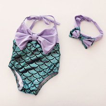 儿童泳衣2016新款夏季美人鱼女宝宝泳装连体式大蝴蝶结女童游泳衣