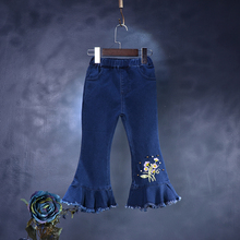 2017新款春季女童牛仔裤韩版童装钉珠刺绣时尚流苏中大童喇叭裤子