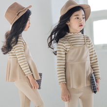 女童套装春装2017新款两件套韩国童装中大童假两件休闲t恤+喇叭裤