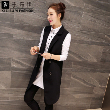 2017春新品春秋款韩国黑色无袖背心薄马夹西装外套中长款马甲女士