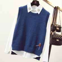 短款韩版百搭外套宽松V领无袖毛衣背心套头学院风针织学生马甲女