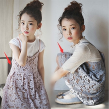 蕾丝假两件连衣裙女童韩国代购2017夏新款狠不一样的美腻风 BY