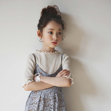 木耳边中袖修身T恤女童韩国代购2017夏新款质感舒适入手 LP