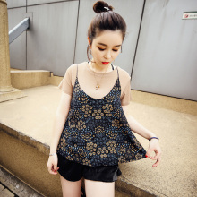 t恤女短袖2017夏季新款韩版时尚修身百搭花朵雪纺2件套显瘦上衣潮