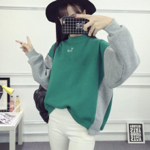 原宿风长袖字母上衣bf短款高领开叉套头加绒卫衣女宽松韩版学生潮
