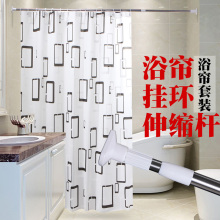 浴室可伸缩浴帘杆套装加厚防水防霉浴帘卫生间保暖浴帘布送杆环