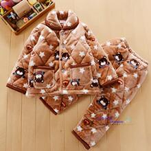 冬季珊瑚绒夹棉儿童睡衣套装 男孩法兰绒睡衣加厚卡通男童家居服