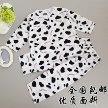 黑白奶牛短袖棉绸儿童睡衣套装 夏柔软宝宝人造棉男童绵绸家居服