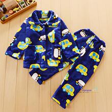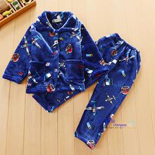 秋冬季法兰绒男童睡衣 卡通水貂绒小童家居服 儿童珊瑚绒睡衣套装