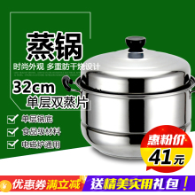 不锈钢蒸锅 2层二层单底32cm家用蒸汽两用电磁炉燃气通用加厚