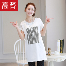 高梵2017新款春夏装韩版休闲宽松T恤女中长款纯棉显瘦印花学生装