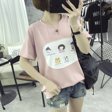 2017夏装新款韩国卡通印花插肩短袖女t恤学生宽松韩版体恤衫女潮