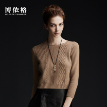 博依格春季女士短款修身长袖圆领加厚100%纯山羊绒套头针织衫毛衣