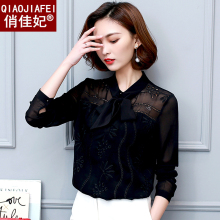 清仓秋装新款女装韩版宽松上衣小衫打底衫大码蕾丝长袖拼接雪纺衫