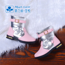 斯乃纳至悦精品中童鞋女童韩版金属色花朵短靴子女童皮鞋