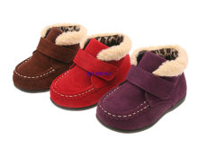 斯乃纳童鞋 冬款 女童 宝宝 加棉加毛 反绒软面 保暖牛皮棉鞋短靴
