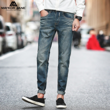2017春夏新款男士牛仔裤青年刮痕显瘦修身小脚韩版九分裤男长裤潮