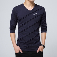 春季款男士长袖t恤男装韩版V领棉质打底衫青年T恤宽松显瘦加大码