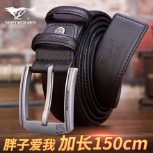 七匹狼男士皮带男针扣腰带真皮裤带商务牛皮大码加长150cm皮带